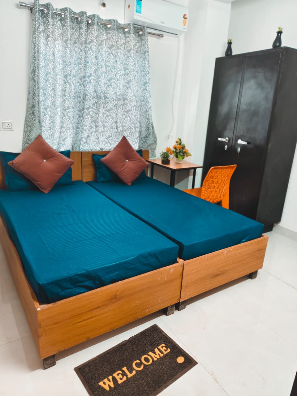 Meticulously designed rooms keeping in mind the needs of long term and short term stays. The rooms are equipped with all the amenities including study/office table, comfortable chair, charging point, mouth watering delicious meals, charging points, private parking. The bathroom has all the modern fittings such as shower and western seat. Warm water is available 24/7.